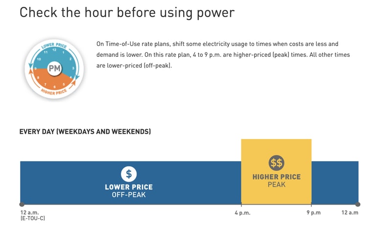The E-TOU-C rate is aimed at high electricity users that can reduce their usage during the peak time of 4pm to 9pm everyday. Any user that can keep their daily electricity usage under 9.4 kWh (applies to PG&E Territory X), would benefit from the E-TOU-C’s low baseline cost of $0.116/kWh. However, any user that goes beyond 9.4kWh on a daily basis will pay a steep increase for the electricity during this period of usage. By shifting electricity usage outside of peak hours, all Time-of-Use ratepayers benefit from the lower off peak cost of electricity. For some low to mid-usage solar owners, this rate has the potential to be optimal.
